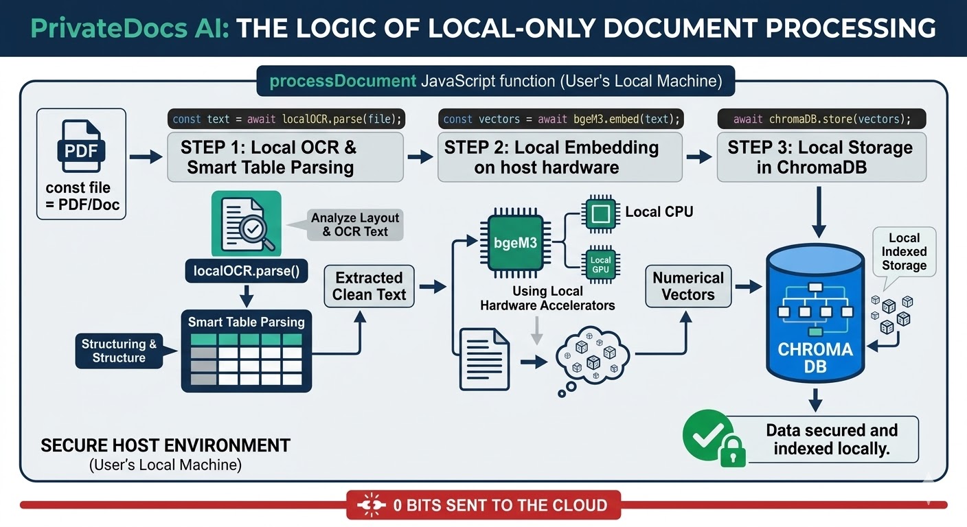 By deploying PrivateDocsAI, organizations can process massive volumes of sensitive documents—from litigation bundles to quarterly tax filings—entirely on the local CPU or GPU.